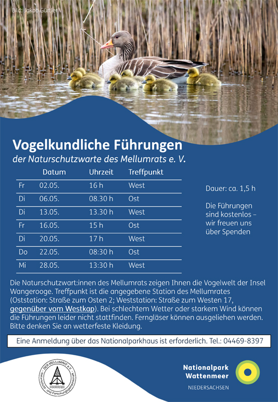Auch im Mai gibt es wieder die beliebten Führungen auf Wangerooge, die den Besucherinnen und Besuchern die vielfältige Vogelwelt der Insel nahebringen: